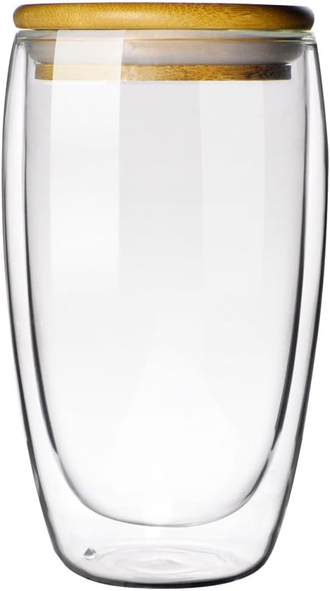 Zhumutang Double-walled Borosilicate Glass Tumbler Coffee Mug 15 Fl.Oz./450ml (Bamboo Lid)