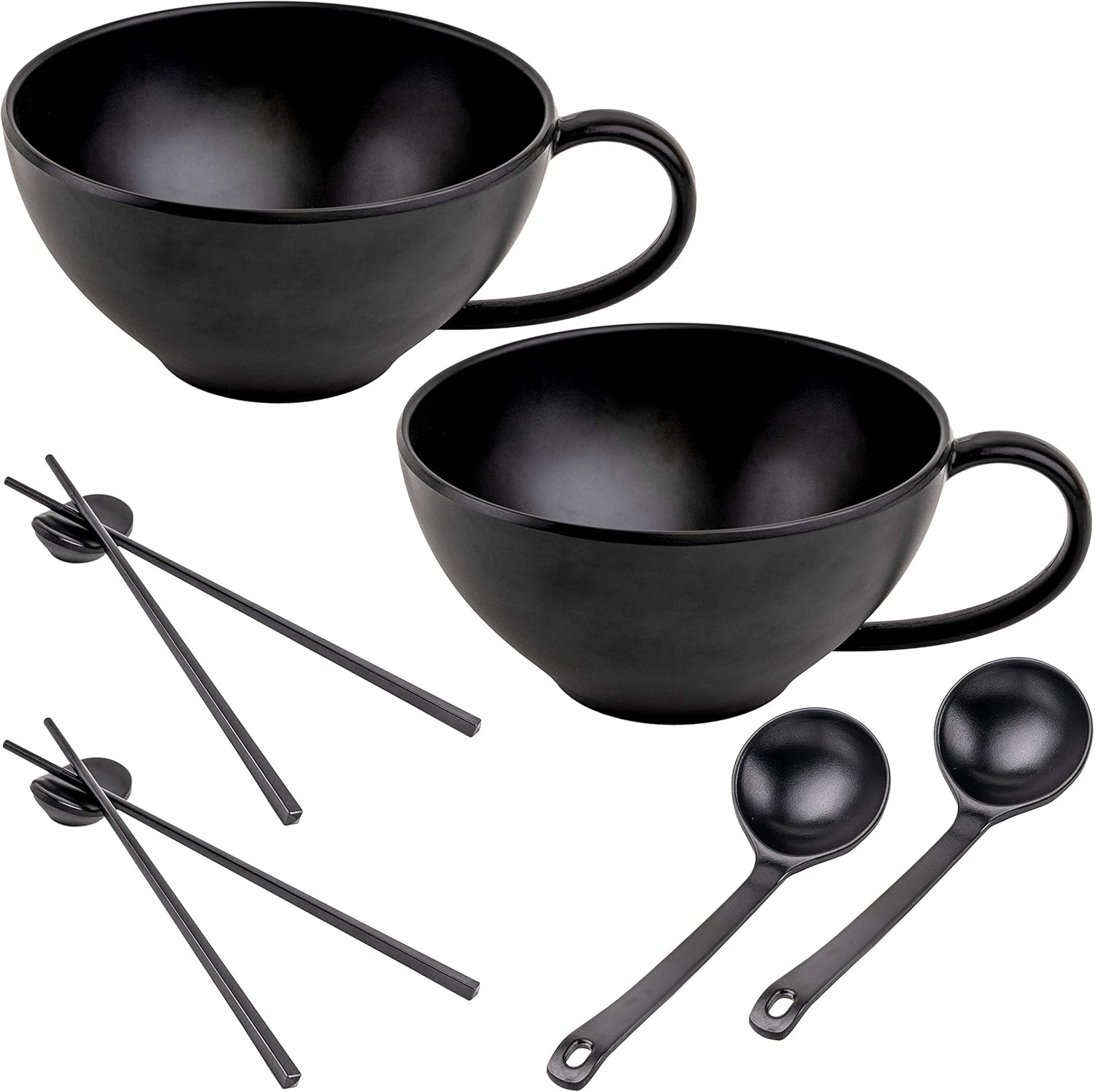 Buy 2 get 3 ACEGOODY High Grade Melamine Ramen Bowl Set - 2 Piece Bowls with Chopsticks, Scoops, Chopstick Rests - Convenient Versatile Bowl with Handle - Heat and Impact Resistant - Black Modern Design
